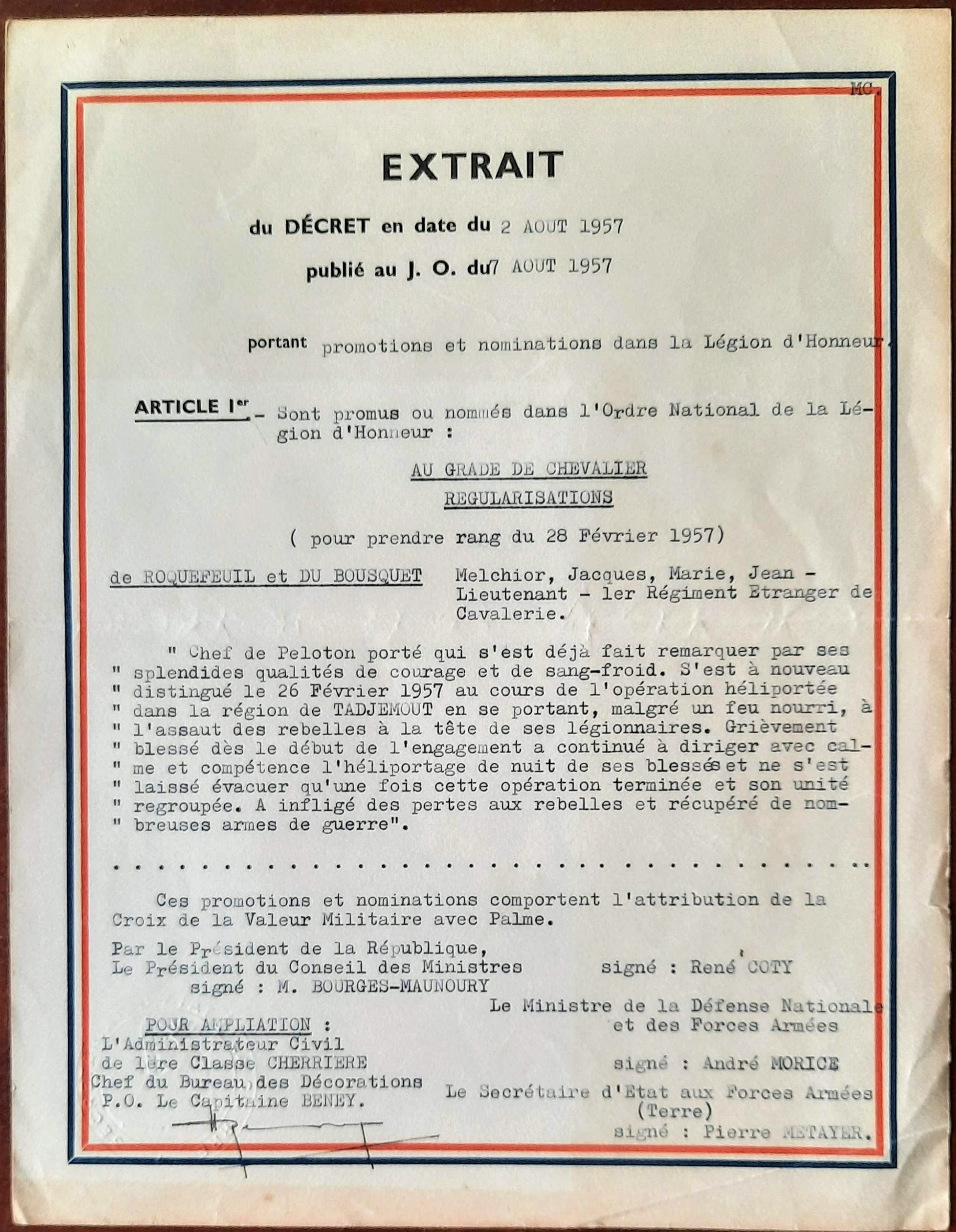 Dans un mémoire de présentation, le ministre écrit au Roi qui approuve de sa main [4]: