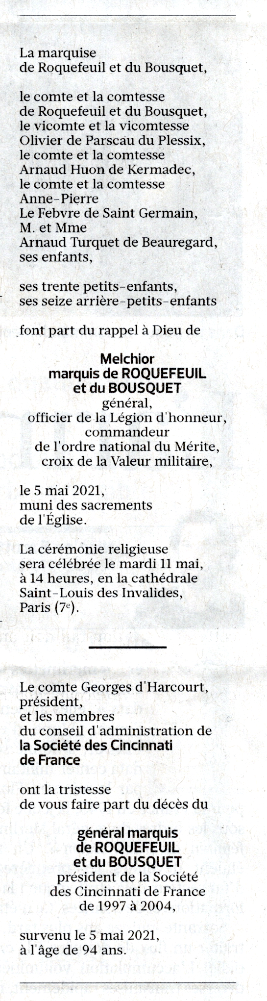 Le comte de Roquefeuil est issu de la famille de Roquefeuil Blanquefort.